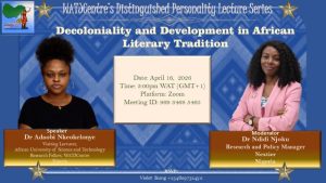 Speaker: Dr Dr Adaobi Nkeokelonye, Visiting Lecturer, African University of Science and Technology; Research Fellow, WATJCentre, Nigeria
